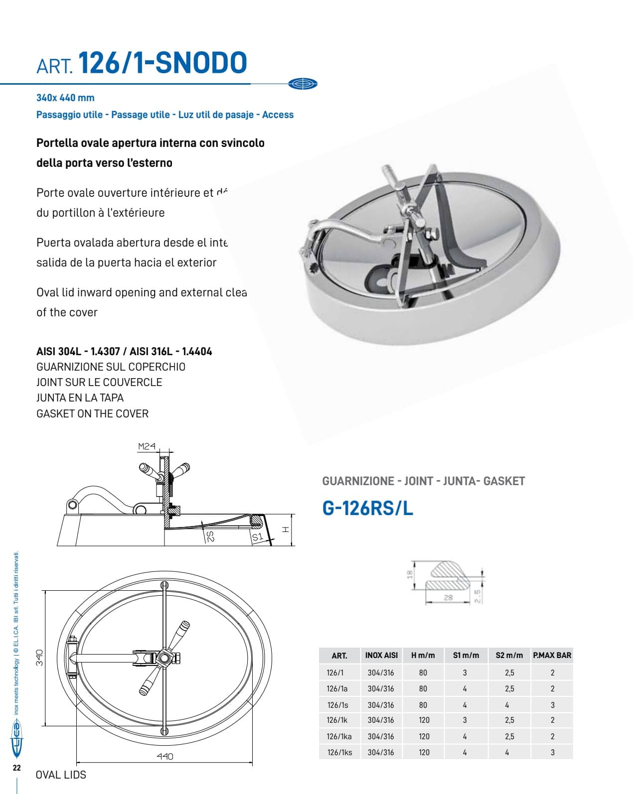 Tutti i prodotti sono disponibili in AISI 304L e AISI 316L