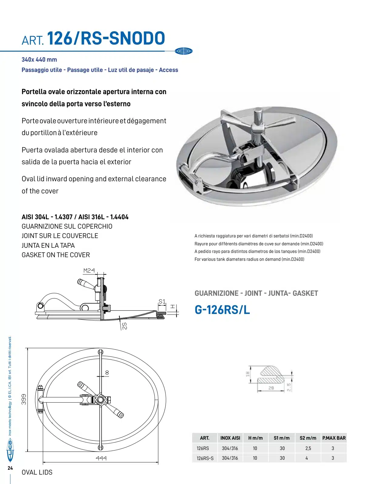 Tutti i prodotti sono disponibili in AISI 304L e AISI 316L
