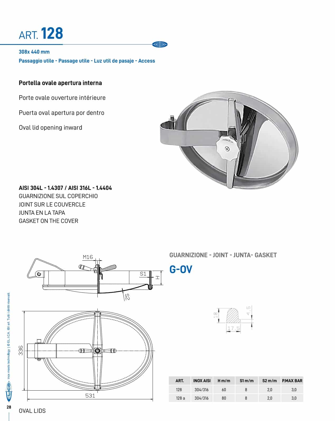 ArticoloInox AISIH m/mS1 m/mS2 m/mP. max (bar)